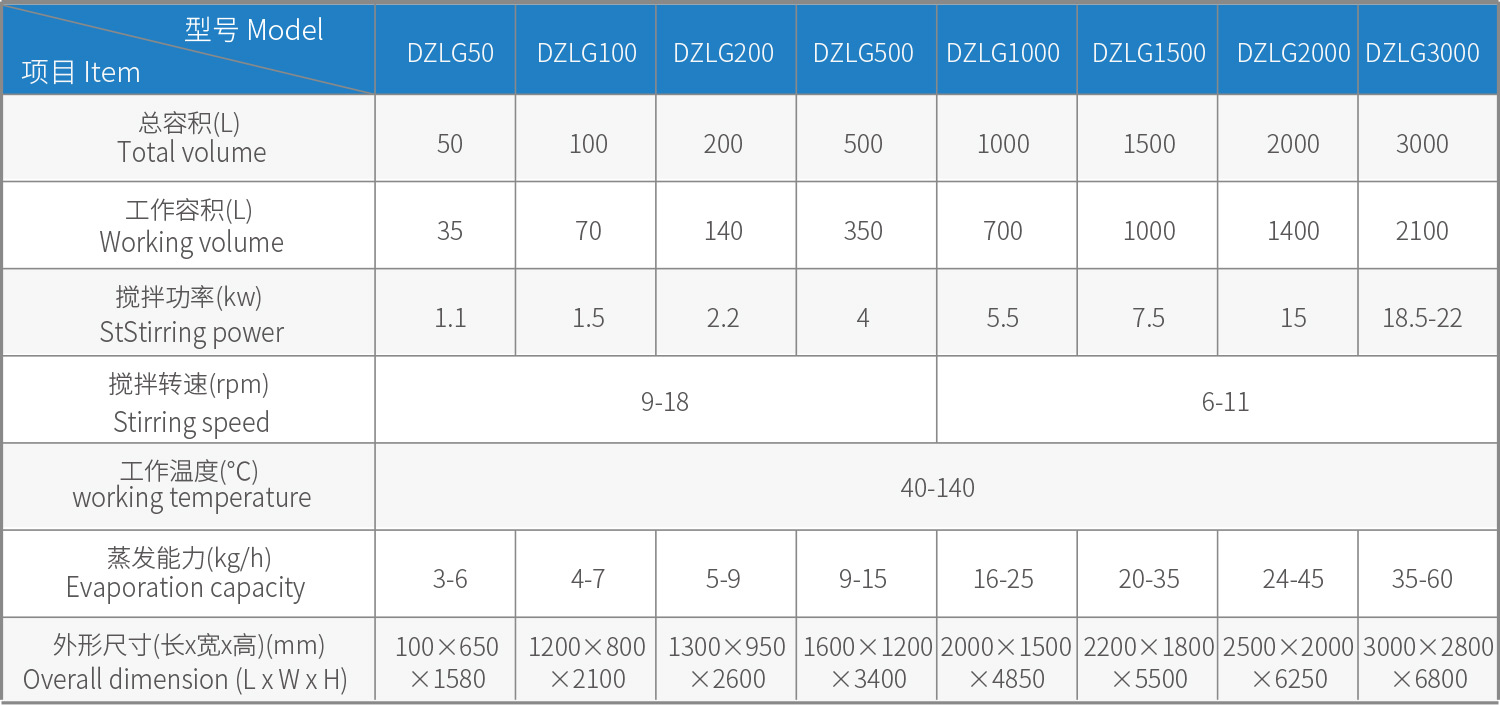 DZLG系列单锥螺带真空干燥机利用搅拌螺带将物料旋转提升,锥形夹套内同时通入传热介质,如热水、导热油、蒸汽等,使加热后的物料从四周提升并从中间下落,快速不断的循环翻转,并通过载气将湿份及时带走,使物料达到干燥和混合目的。并且在筒体内无任何传动机构,从根本上杜绝因润滑油泄漏而导致物料污染的问题,运行可靠稳定,特别适宜卫生要求高的粉料、颗粒混合干燥。